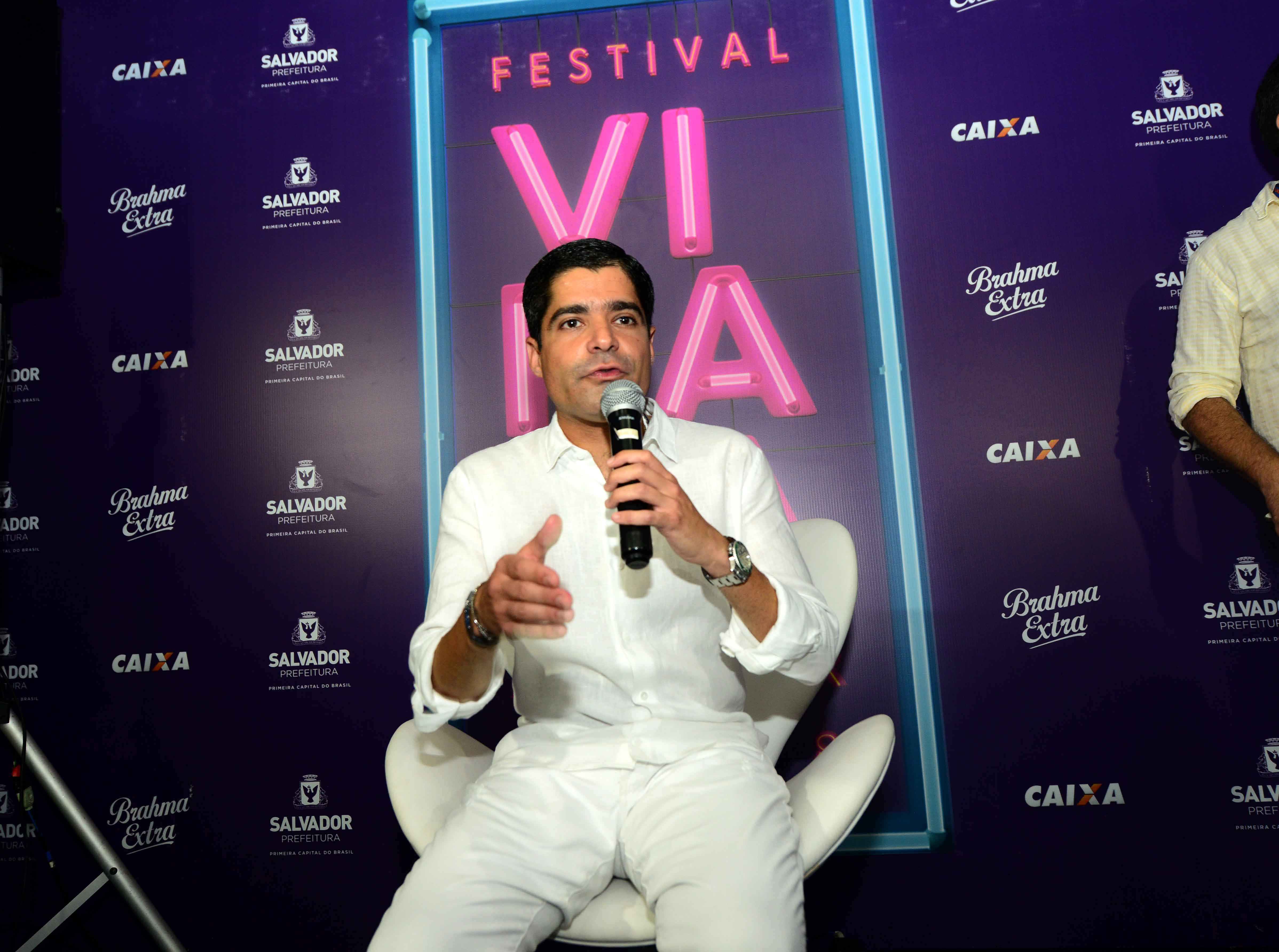 O prefeito ACM Neto concedeu sua última entrevista coletiva do ano, neste domingo (31), durante o Festival Virada Salvador, na Orla da Boca do Rio. Ele atendeu aos jornalistas na área de coletiva do espaço, ao lado da Sala de Imprensa, e comemorou os resultados alcançados pelo evento.