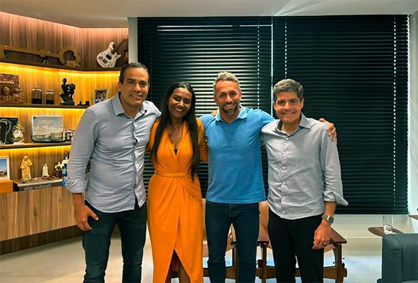 O candidato a prefeito de Camaçari, Flávio Matos (União Brasil), e a sua candidata a vice, Professora Angélica (PP), reuniram-se na tarde desta segunda-feira (7) com Bruno Reis, prefeito reeleito de Salvador, e com ACM Neto, vice-presidente nacional do União Brasil, para traçarem as estratégias do segundo. Neto afirmou que a campanha já reiniciou e que todo o grupo aliado a Flávio na Região Metropolitana (RMS) estará presente na cidade, somando esforços para a vitória.