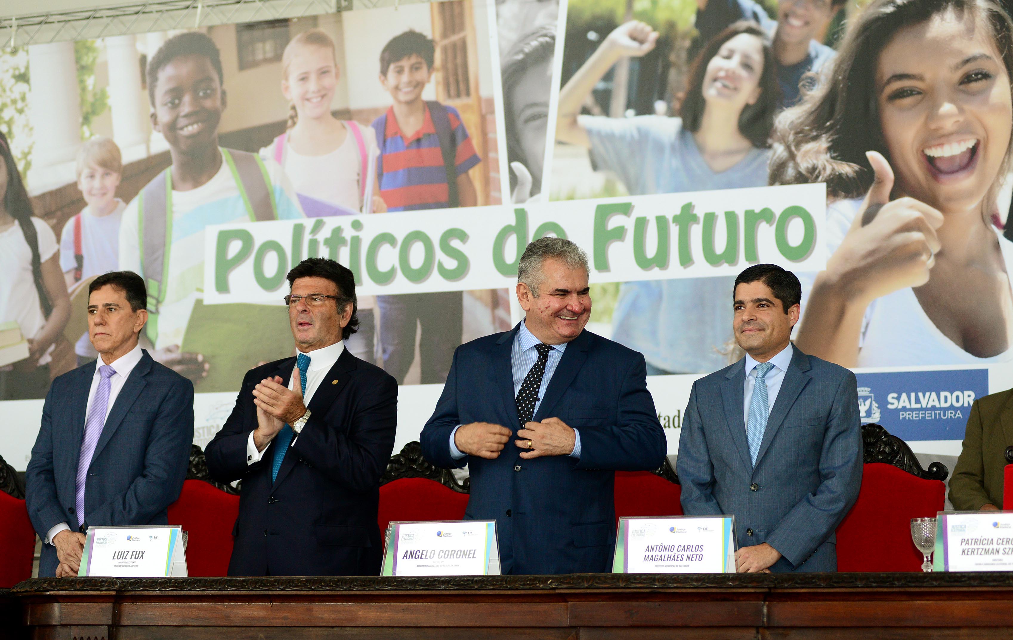 A conscientização dos futuros eleitores sobre a importância do voto feito de forma prática: uma eleição para definir os candidatos mirins a deputado, vereador, prefeito e governador. De forma lúdica e participativa, alunos de escolas municipais e estaduais estiveram presentes no encontro Políticos do Futuro, desenvolvido na Bahia pelo Tribunal Regional Eleitoral (TRE-BA) e abertura ocorrida nesta terça-feira (31), no Teatro do Iceia, no Barbalho. A cerimônia contou com as presenças do prefeito ACM Neto, do governador Rui Costa, do ministro do Tribunal Superior Eleitoral (TSE), Luiz Fux, e do presidente do TRE-BA, José Edivaldo Rotondano, dentre outras autoridades.