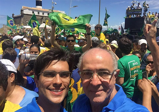 “Nosso trabalho não pode parar. Alexandre esteve conosco em todas as manifestações. É o maior militante do Escola sem Partido, projeto que vai livrar as nossas crianças da doutrinação ideológica e partidária nas escolas. Alexandre acredita num estado menos burocrático, desde sua formação acadêmica”, frisou. (Imagem: Facebook / Alexandre Aleluia)
