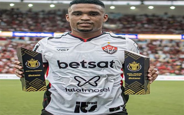 Emocionado, o jogador agradeceu ao Vitória e à torcida pelo apoio ao longo do ano, destacando o orgulho de dividir a artilharia do torneio.