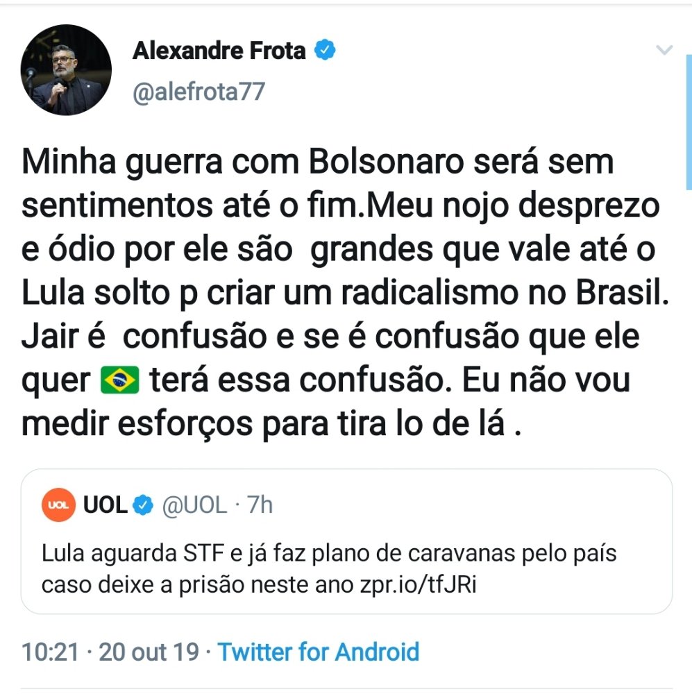 Alexandre Frota entra para a clube dos “Lula Livre”