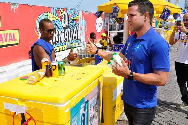Os 4,5 mil ambulantes licenciados que trabalham nos circuitos do Carnaval começaram a receber, na manhã deste domingo (23), protetores solares em ação realizada em parceria entre as secretarias municipais de Ordem Pública (Semop) e de Saúde (SMS). Cada licenciado recebe um produto por isopor. O objetivo é garantir o bem-estar desses trabalhadores informais expostos aos raios solares diariamente durante a festa.