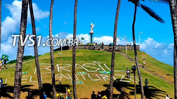 Na madrugada deste sábado (1), representantes do Sindicato dos Professores depredaram o gramado do Cristo da Barra para colocar bandeiras sindicais, faixas em protesto ao governo Bolsonaro e cruz em claro sinal de deboche dos falecidos durante a pandemia.
