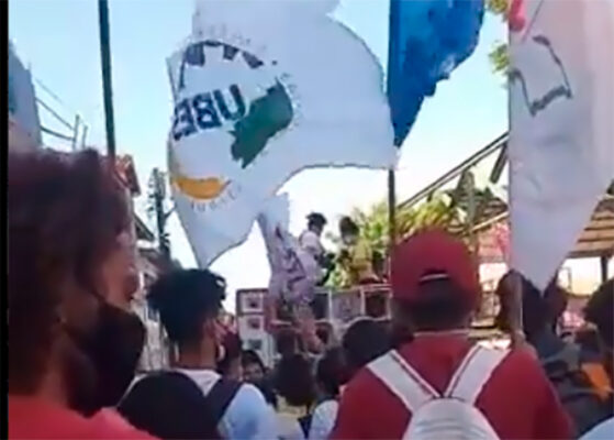 Durante a manifestação da extrema-esquerda na manhã deste domingo (7) particulares registraram o momento em que o locutor no trio elétrico reclamava que “uma companheira nossa foi assaltada”. As imagens estão sendo divulgadas em redes sociais.