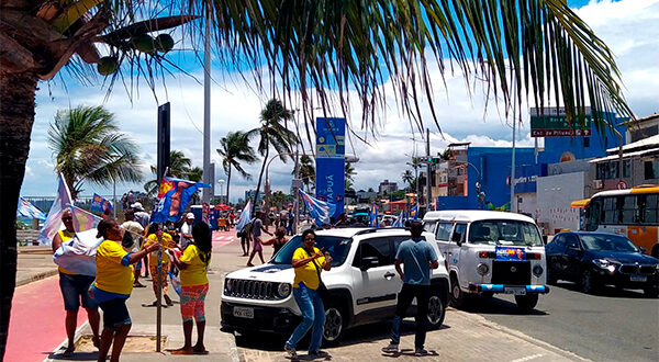 Imagens enviadas por um leitor via Whatsapp denotam uma manifestação, popular e ordeira, dos barraqueiros de Itapuã a favor do candidato de oposição ao petismo na Bahia, ACM Neto.
