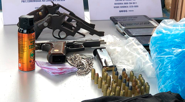Armas, munições, drogas e 10 aparelhos celulares foram apreendidos no domingo (26), por equipes da 3ª Companhia Independente da Polícia Militar (CIPM), no bairro de Cajazeiras 8, após denúncia sobre a presença de traficantes armados na localidade de Jardim Mangabeira. Uma mulher foi conduzida para a Central de Flagrantes. “Quando …