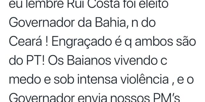 O deputado federal Paulo Azi (DEM) disse hoje (07) que o governador Rui Costa “tem feito um esforço enorme para aparecer na mídia” às custas da onda de violência que tomou conta do Ceará. “Enquanto os prefeitos do interior da Bahia imploram diariamente para que o Estado envie policiais para …