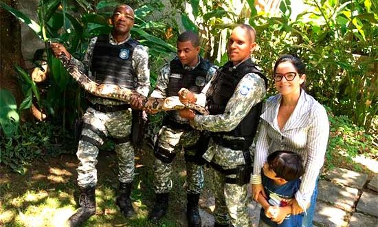 Guarda Municipal resgata jiboia de 2,5 metros em Patamares