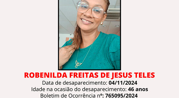 A angústia tomou conta da família de Robenilda Freitas de Jesus Teles, de 46 anos, que desapareceu na última segunda-feira (5) em Salvador. Segundo o filho, ele estava ao lado da mãe no metrô, onde ambos conversavam normalmente até que precisou desembarcar na estação de Pernambués. Robenilda deveria seguir até …