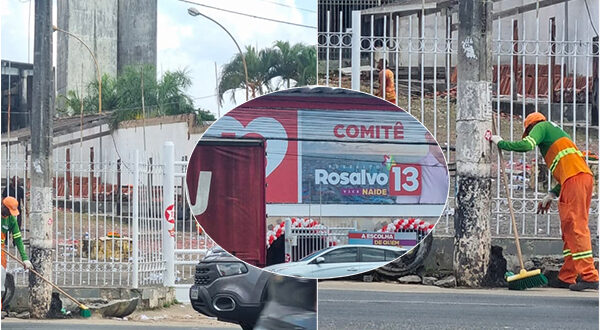 Agentes da prefeitura de Lauro de Freitas foram flagrados, na manhã desta terça-feira (3), fazendo o serviço de limpeza no comitê do candidato a prefeito Antônio Rosalvo (PT), aliado da atual gestora do município, Moema Gramacho (PT). O comitê foi inaugurado na noite desta segunda-feira (2), na Estrada do Coco. …