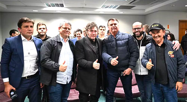 O presidente da Argentina, Javier Milei, reuniu-se a portas fechadas neste domingo (7) com o ex-presidente Jair Bolsonaro, os governadores Tarcísio de Freitas (Republicanos-SP) e Jorginho Mello (PL-SC) e o deputado federal Eduardo Bolsonaro (PL-SP). O encontro aconteceu no hotel em Balneário Camboriú (SC) onde estão hospedados. Durante o encontro, …