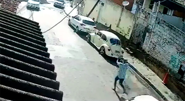 Imagens de uma câmera de segurança mostram o momento em que um marginal sai de um carro e começa apontar uma arma de fogo em direção à primeira vista no bairro de Itapuã, orla de Salvador. Na sequência, o vagabundo volta para o carro com o objetivo de continuar assaltando …