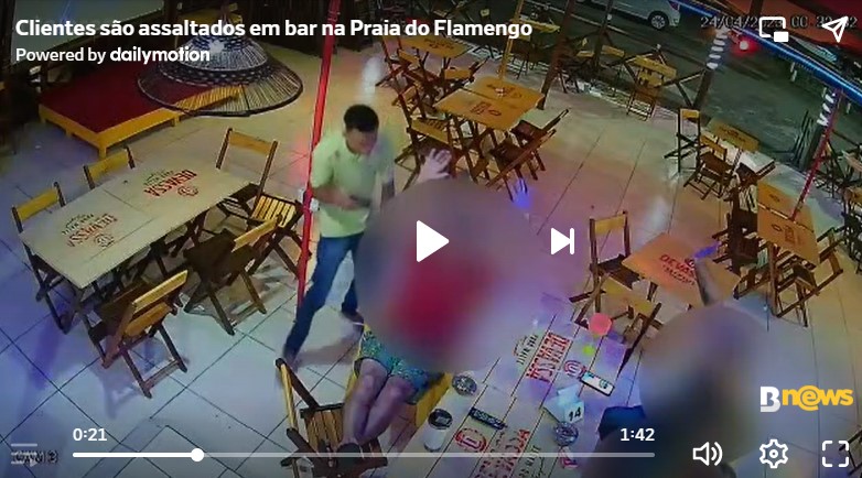 Dois filhos da puta assaltaram clientes e funcionários de um bar localizado na praia do Flamengo, em Salvador, na madrugada desta segunda-feira (24). Imagens do circuito interno de segurança registrou toda a ação dos vagabundos.