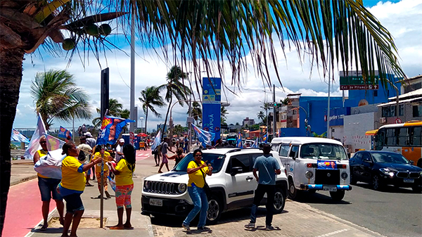 Imagens enviadas por um leitor via Whatsapp denotam uma manifestação, popular e ordeira, dos barraqueiros de Itapuã a favor do candidato de oposição ao petismo na Bahia, ACM Neto.