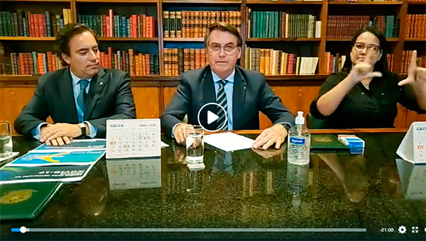 O presidente Jair Bolsonaro afirmou nesta quinta-feira (9) que espera a normalização da atividades do país em menos de “três ou quatro” meses, para não haver, segundo ele, uma complicação no cenário econômico. Ao citar os gastos de cerca de R$ 600 bilhões para programas de combate à pandemia do novo coronavírus e manutenção de empregos e renda das empresas, o presidente comparou a situação às margens de um rio após a destruição de uma ponte. “Estamos com esses R$ 600 bilhões mantendo a comunicação com as duas margens do rio, só que temos um limite, acredito que três meses ou quatro meses fica complicado, então a gente espera que as atividades voltem antes disso”, afirmou durante sua live semanal transmitida pelo Facebook.