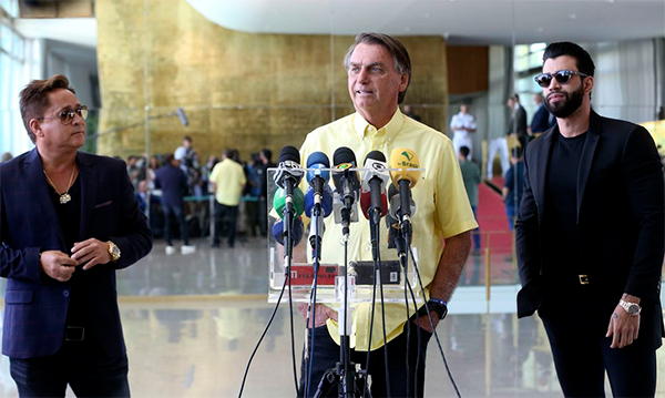 No fim da manhã desta segunda-feira, Bolsonaro também recebeu, em sua residência oficial, os cantores sertanejos Leonardo, Gusttavo Lima, Zezé di Camargo, Chitãozinho e Fernando (da dupla Fernando e Sorocaba), que endossaram seu apoio à reeleição do presidente.