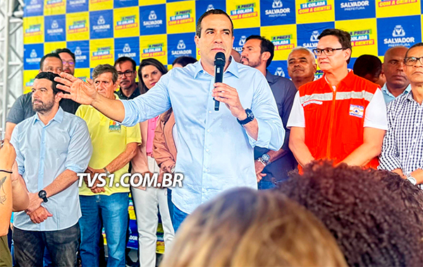 Durante a entrega das obras de requalificação do largo do Campo Grande nesta terça-feira (23), o prefeito de Salvador, Bruno Reis (União), aproveitou a ocasião para anunciar um novo pacote de intervenções urbanas e criticar a oposição.