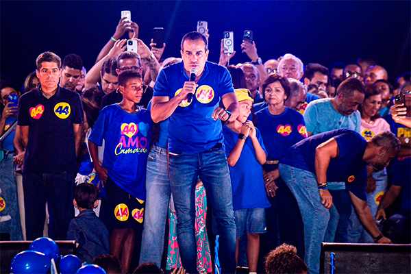 O prefeito Bruno Reis atribuiu a aliança do candidato do PT de Camaçari com o crime organizado ao medo de perder a eleição, no próximo domingo. “Você olha para a cara dos nossos adversários, a cara é de desespero, eles estão vendo a derrota chegar, as nossas pesquisas mostram isso, as deles já botam a gente na frente e as nossas já mostram a nossa vitória com pelo menos dez pontos de diferença no próximo domingo. Então vamos lá, vai ter urna nova e prefeito novo. No domingo é 44, Camaçari. Nós vamos, no próximo domingo, mostrar que o crime não compensa”, disse Bruno, insinuando que essa eleição é a luta do bem contra o mau.