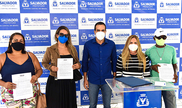 Os trabalhadores do comércio de rua de Salvador foram beneficiados com a entrega de 23 novos quiosques espalhados nos trechos de orla de Amaralina e Boa Viagem, além do Campo da Pronaica, em Cajazeiras, e na Lagoa dos Dinossauros, no Stiep. Os permissionários assinaram os termos de posse nesta quinta-feira (22), em ato simbólico com as presenças do prefeito Bruno Reis e da secretária municipal de Ordem Pública (Semop), Marise Chastinet, na Praça Cairu, no Comércio.