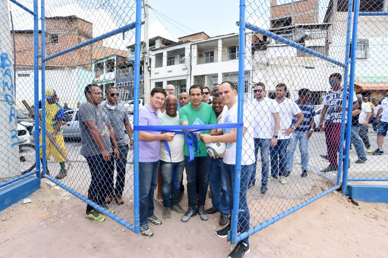 O vice-prefeito Bruno Reis ainda inaugurou na região do Subúrbio um campo de futebol completamente requalificado na Rua Almeida Júnior, em Fazenda Coutos. A administração municipal investiu R$ 212 mil no equipamento esportivo, que recebeu serviços de instalação de alambrados e traves, nivelamento de piso, aplicação de rede sobre o campo, iluminação e contenção. “A Prefeitura construiu ou reformou mais de 300 campos e quadras na cidade, de 2013 para cá, contribuindo para estimular a prática esportiva, que tanto tem ajudado a tirar os jovens das drogas e da criminalidade”, assinalou.