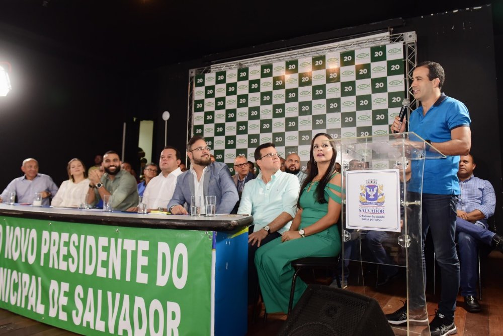 “O PSC vai se fortalecer em 2020. E eu estou aqui assumindo um compromisso de colocar o meu conhecimento, a minha experiência, a minha energia e força de trabalho para fazer do PSC um partido muito maior em 2020, na eleição municipal de Salvador”, afirmou o vice-prefeito Bruno Reis, na solenidade de posse do vereador Ricardo Almeida como presidente do Partido Social Cristão na capital baiana, no Centro de Cultura da Câmara, neste sábado (29).