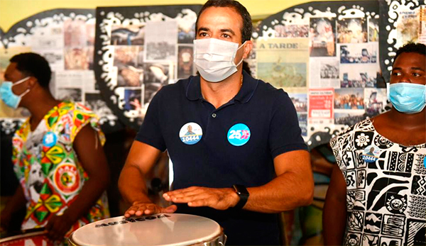 O candidato a prefeito da coligação ‘Salvador Não Pode Parar’, Bruno Reis (Democratas), visitou neste domingo (8) a sede do Malê Debalê, em Itapuã, e destacou a “relação histórica” com os blocos afro ao longo de sua vida pública. Ao participar de ato político do candidato a vereador Claudio Malê, Bruno ainda tocou timbal ao lado de músicos do Malê.