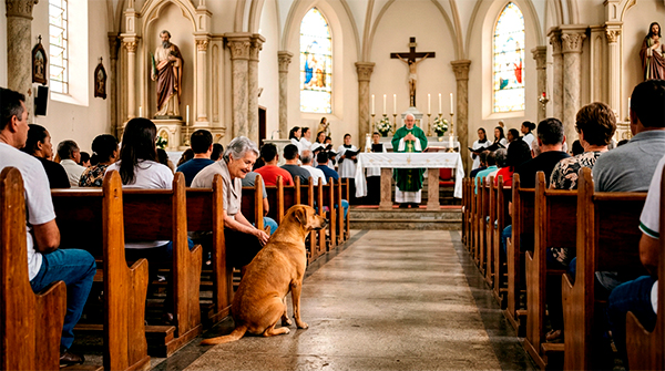 Um cachorro caramelo virou assunto em São Mateus do Sul após começar a frequentar missas regularmente e se comportar como mais um fiel dentro da igreja, sempre tranquilo, sentado e acompanhando as celebrações do início ao fim, o que chamou a atenção do padre e da comunidade local.