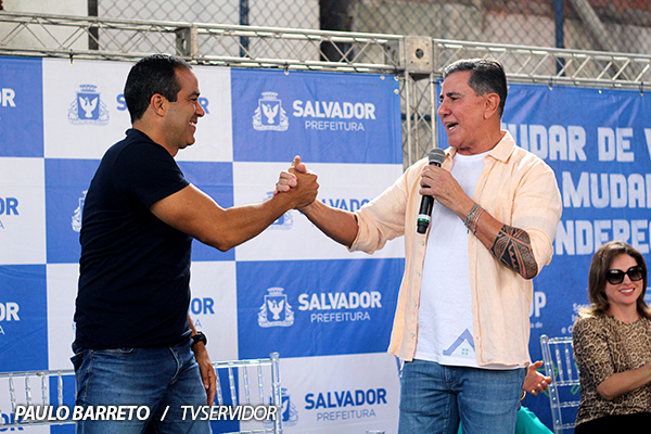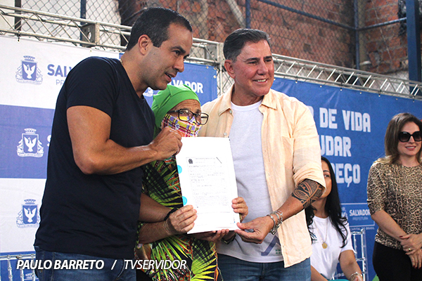 Os bairros vizinhos Calabar e Alto das Pombas ganharam uma série de ações promovidas pela Prefeitura de Salvador, que envolveu a entrega de títulos de propriedade, conclusão de contenção de encosta e ordens de serviço para reforma de casas em situação precária, recuperação de escadaria e limpeza e requalificação de canal. As iniciativas foram anunciadas em cerimônia ocorrida na quadra do Calabar, neste sábado (10), pelo prefeito Bruno Reis, acompanhado do corregedor-geral de Justiça, desembargador Edvaldo Rotondano, demais gestores municipais, imprensa e população.