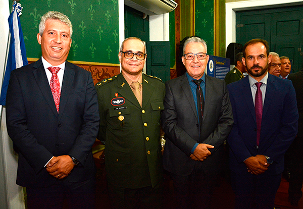 O subcomandante da Escola de Aperfeiçoamento de Oficiais do Exército Brasileiro, coronel João Henrique da Silva Marinho, foi homenageado na noite desta segunda-feira (6), pela Câmara Municipal de Salvador. O coronel, que ocupou até janeiro deste ano o posto de Chefe do Estado-Maior da 6ª Região Militar, recebeu em sessão solene presidida pelo vereador Henrique Carballal (PV), a Medalha Thomé de Souza. A atividade aconteceu no Plenário Cosme de Farias e contou também com a participação dos vereadores Isnard Araújo (PHS) e Fábio Souza (PHS). “Para mim é uma honra poder homenagear o coronel Marinho. Nós todos temos que reconhecer as Forças armadas como uma defensora da nossa soberania. É preciso que o povo brasileiro reconheça a importância dos homens e mulheres que atuam na defesa do nosso país”, disse Henrique Carballal.