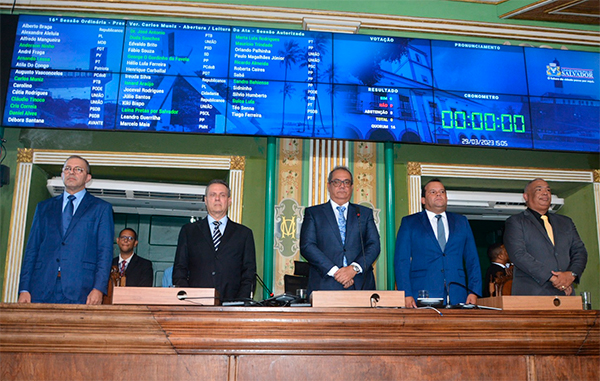 Salvador completa 474 anos hoje (29) e a Câmara Municipal realizou uma sessão especial alusiva ao aniversário da cidade. O evento foi conduzido pelo presidente da Casa, vereador Carlos Muniz (PTB). Na ocasião, ele frisou que o Legislativo da capital da Bahia tem papel decisivo na construção diária de melhores dias para Salvador, pois é a Casa da cidadania e ecoa os anseios do povo, mediando os interesses da população com os poderes executivos.