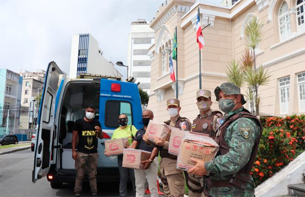 A Polícia Militar da Bahia, através do Departamento de Polícia Comunitária e Direitos Humanos da PM (DPCDH), recebeu 200 cestas básicas doadas pela Frente Nacionais de Negros e Negras (FNNN), para a campanha Força Solidária, na manhã desta quarta-feira (4), no Quartel do Comando Geral da PM, nos Aflitos.