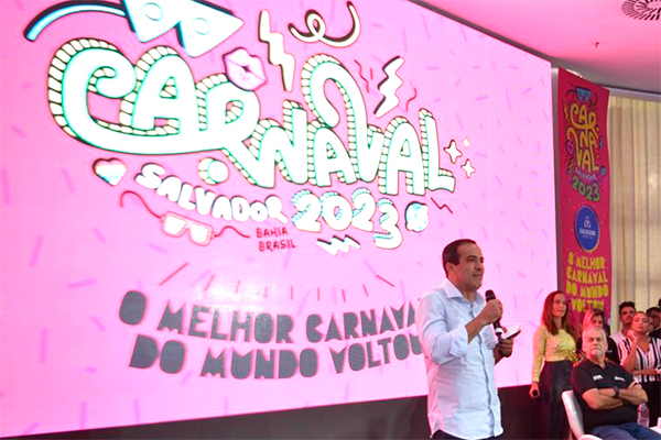 Com dez dias, mais de 2,6 mil horas de música e cerca de 1 mil atrações – sendo mais de 600 nos circuitos oficiais e outras 400 espalhadas por dez bairros da capital -, a maior festa de rua do planeta retorna após dois anos de hiato, devido à pandemia de Covid-19. Com o tema “O Melhor Carnaval do Mundo Voltou”, as atrações do Carnaval de Salvador 2023 foram apresentadas nesta terça-feira (7), pelo prefeito Bruno Reis, acompanhado de gestores municipais, no Wish Hotel da Bahia, no Campo Grande.