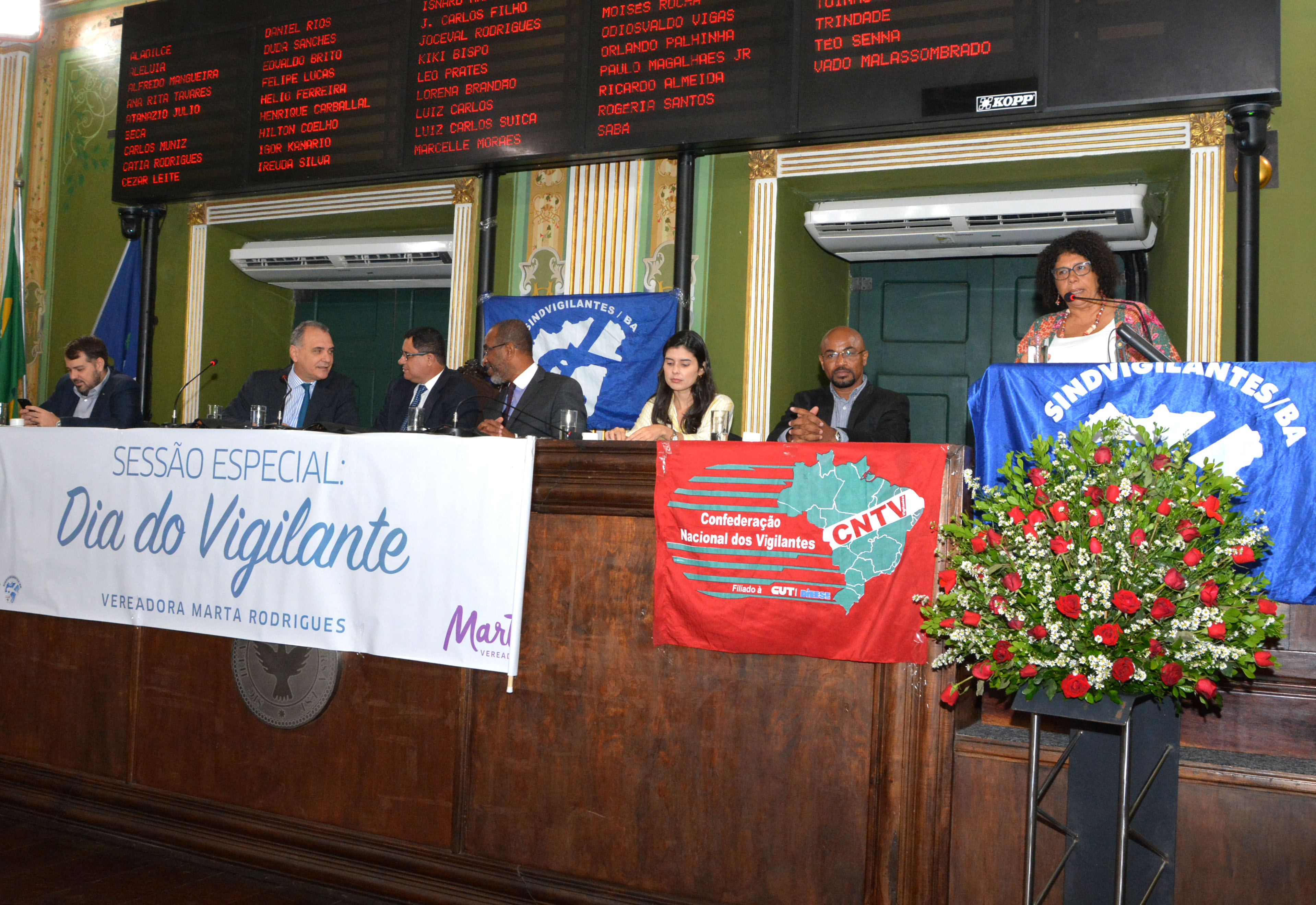 Através de uma ação de autoria da vereadora Marta Rodrigues (PT), foi realizada na quarta-feira (21) uma sessão especial alusiva ao Dia Nacional do Vigilante. A data foi celebrada ontem (20), conforme determina a Lei Federal nº 7.102/83. A parlamentar é autora do Projeto de Lei nº 177/09, que institui o Dia Municipal do Vigilante, também comemorada na mesma data.