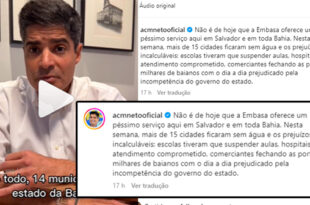 Em redes sociais, o ex-prefeito de Salvador, ACM Neto, teceu duras críticas à “empresa” líder em reclamações na Bahia: a EMBASA. “O cidadão está sendo obrigado a cada vez pagar mais caro para ter a água com o serviço cada vez pior. Nos últimos anos, a gente só viu a …