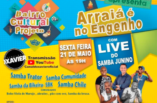 Nesta sexta-feira (21), será iniciado o tradicional projeto Samba Junino do Engenho Velho de Brotas. Porém, mais uma vez, o evento será realizado de forma virtual devido a pandemia da covid-19. Serão três lives com diversos artistas, sempre às 19h. A festa será transmitida através do YouTube (https://youtube.com/c/CanalDoXavierOficial ). Na …