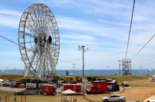 Mãos apoiadas na haste de madeira, equipamentos de segurança, aventura, tensão, alívio e diversão. Essa é a receita para escorregar os 150 metros de descida pela tirolesa, que possui 15 metros de altura, montada na Arena Daniela Mercury, na orla da Boca do Rio, onde acontece o Festival Virada Salvador. …