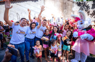 Acompanhada da energia contagiante do casal de coelhinhos da Páscoa, tia Debinha, como é carinhosamente conhecida, manteve o costume de levar alegria para as crianças durante o período da Semana Santa. A prefeita de Lauro de Freitas, Débora Régis, circulou em várias localidades da cidade nesse sábado (19/4) para distribuir …