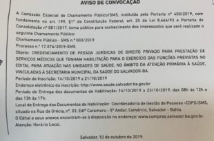 Em mais uma tentativa para acabar com o déficit de médicos nos postos da rede básica do município, a Secretaria Municipal da Saúde de Salvador (SMS) divulgou na edição de hoje (11) do Diário Oficial do Município, mais um chamamento público para contratação de médicos por pessoa jurídica (PJ) para …