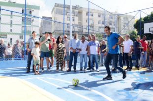 A população de Caminho de Areia ganhou uma quadra poliesportiva requalificada pela Prefeitura no sábado (6), quando o secretário de Infraestrutura e Obras Públicas, vice-prefeito Bruno Reis, inaugurou o equipamento. Ele esteve na localidade acompanhado do ex-deputado federal e assessor especial do Senado, Benito Gama, dos vereadores Sérgio Nogueira, Vado …