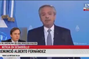 Informações do jornal La Nación apontam que o presidente argentino Alberto Fernandez renunciou ao cargo de presidente da República. Um esquerdopata menos, graças a Deus.