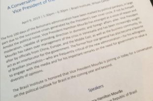 Leia maisMourão critica Bolsonaro e exalta approach com China e Venezuela em palestra no Wilson Center Institute