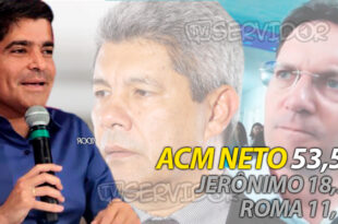 Leia maisACM Neto 53,5% – Jerônimo 18,2% – Roma 11,1%