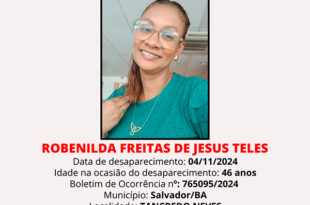 A angústia tomou conta da família de Robenilda Freitas de Jesus Teles, de 46 anos, que desapareceu na última segunda-feira (5) em Salvador. Segundo o filho, ele estava ao lado da mãe no metrô, onde ambos conversavam normalmente até que precisou desembarcar na estação de Pernambués. Robenilda deveria seguir até …