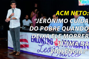 Leia maisACM Neto critica discurso social do PT na Bahia: “Será que Jerônimo cuida do pobre quando deixa ele morrer vítima da violência?”
