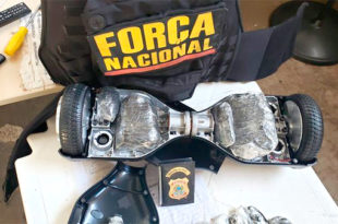Dois quilos de haxixe foram apreendidos pela Polícia Federal (PF), durante operação conjunta com a Força Nacional no bairro de Vila Portes, em Foz do Iguaçu, no Paraná. A droga estava escondida dentro de um skate elétrico que seria de um passageiro de uma empresa de turismo que vende passagens para …