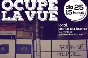 O movimento denominado ‘Ocupa La Vue’ realiza protesto marcado para esta sexta-feira (25), às 15h, em frente à obra do condomínio La Vue, na Ladeira da Barra, pela demissão do ministro da Secretaria de Governo da Presidência, Geddel Vieira Lima. A manifestação acontece após a decisão do presidente Michel Temer …