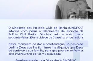 O Sindicato dos Policiais Civis do Estado da Bahia (SINDPOC) denuncia que mais de 130 policiais civis foram infectados pelo novo coronavírus, e já contabilizam três óbitos, sendo o mais recente o escrivão Emílio Dionísio, lotado da 16ªCoorpin, Jacobina, que faleceu na última segunda-feira (23). O presidente do SINDPOC, Eustácio …
