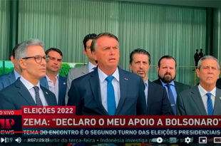 Governador de Minas Gerais, reeleito no primeiro turno das eleições deste ano, Romeu Zema (Novo) declarou apoio à candidatura do atual presidente Jair Bolsonaro (PL). O anúncio oficial do apoio ao presidente foi feito pelo governador na manhã desta terça-feira (04), quando Bolsonaro recebeu Zema em Brasília. Assista ao vídeo: …