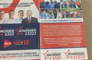 Segundo postagem so vereador e filho de Jair Bolsonaro, Carlos Bolsonaro, o candidato a deputado federal Valdenor Pereira e o também petista Rui Costa e o distribuem material grafico de campanha ilegal com a imagem do presidiário Lula como candidato a presidente. No panfleto Lula é o candidato a presidente …